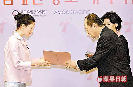 此外,「長今」李英愛昨日以代言人身份出席韓國化妝品牌太平洋「IOPE」主辦的「PinkRibbon」活動記者會,呼籲婦女關注乳癌及定時接受婦科檢查的重要性。李英愛接過委任狀成為該活動的宣傳大使,並將參與在本月二十四日於釜山舉行的馬拉松大會。