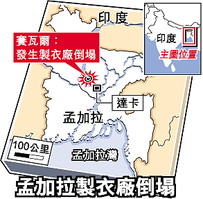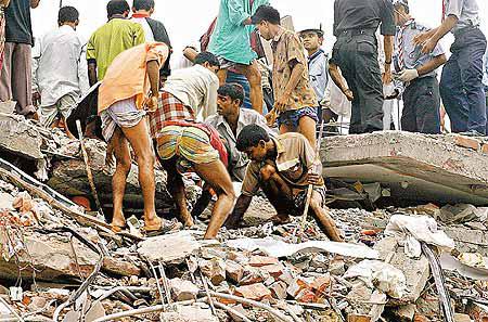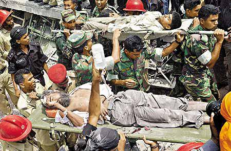 孟加拉首都達卡西北面一座九層高製衣廠周一凌晨發生爆炸,整座建築物瞬間倒塌,一層壓一層,變成一堆瓦礫,造成至少二十死一百傷。據說當時有多達五百人正在工廠內夤夜趕工,估計多達二百至四百人仍被活埋在瓦礫堆中。由於現場道路狹窄,起重機很難進入,加上缺乏重型拯救工具,使救援工作十分困難。