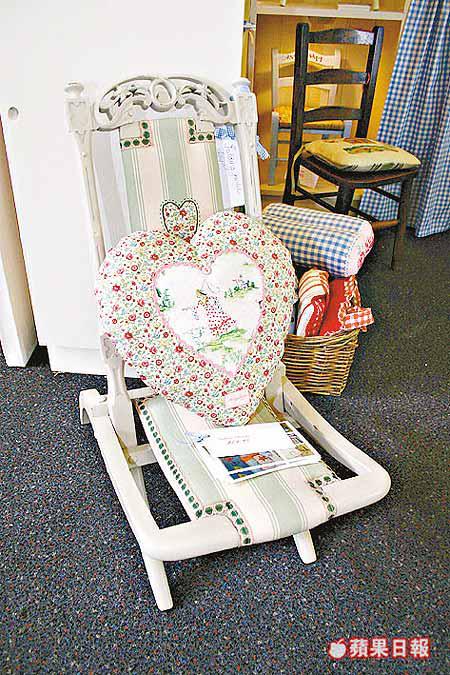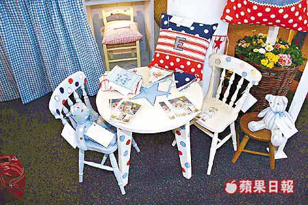 傳統英式鄉村家具配上彩色繽紛圖案,是兩子之母HaleyBevan一手包辦製成,她透過協助鄉村女士創業的WomeninRuralEnterprise組織,得到展覽攤位來展銷這些兒童家具,布藝椅枕及布公仔,售價約為200港元,椅子(圖)售價由千多港元起。