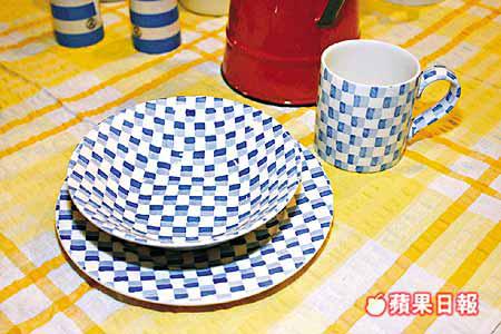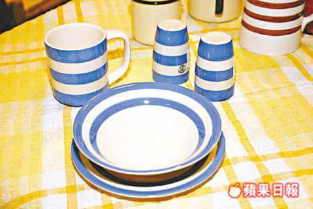 這兩套藍白色組合的陶瓷用具,可經郵購或電話訂貨,經典的T.G.GreenCornishBlue陶瓷,售價由100港元起;圖的Chequers早餐餐具,一套3件售價330港元。 (Chandlers)
