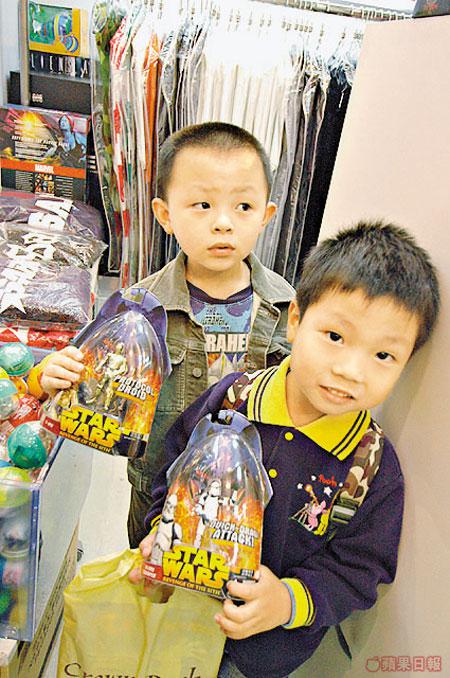 在旺角兆萬遇上前來掃貨的星戰兄弟,二人早在玩具反斗城買咗發聲劍及黑武士套裝,現在掃埋公仔。哥哥買士兵,弟弟買鍍金機械人,勢估唔到白色士兵價,竟然比金色機械人貴!老闆解釋:「士兵係一對對咁買,有心湊夠一個戰隊的人,實會買齊幾對士兵,士兵價錢因而拉高。機械人只係單隻出現,單打獨鬥,所以咪平啲囉!」
