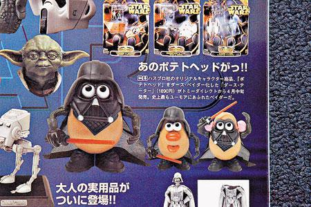 今年的《星戰3》,連ToyStory都湊熱鬧,設計了一款極Cute的黑薯頭武士,揭起薯殼,就變成黑武士公仔,既可愛又可惡。它將於本月21日在日本登場,有份售賣黑薯頭武士的SupermanToys老闆話會即刻返貨:「呢款公仔每個只賣百幾蚊,訂10個先返到1個。因為數目少、個個想要,炒硬!」