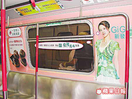 地鐵九龍灣德福廣場,請嚟人氣女藝人梁詠琪GiGi任代言人,重用佢嘅肖像,包裝一列觀塘線列車做宣傳。
