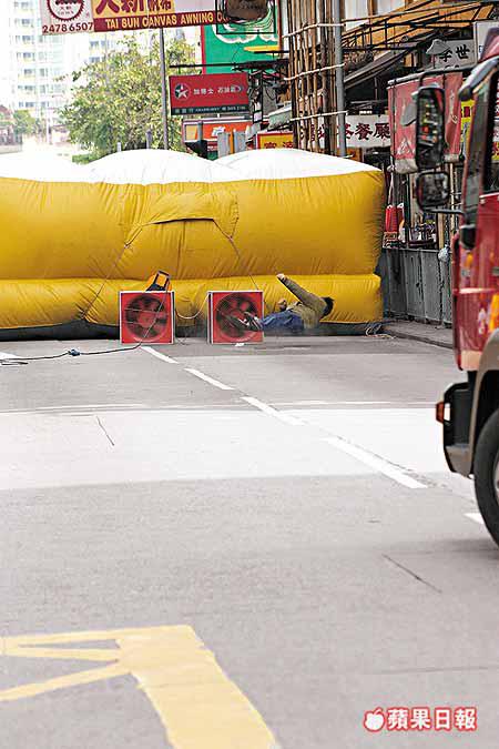 【本報訊】昨午二時半,元朗大棠路五十四號英暢樓住客發現一名男子在六樓天台徘徊,懷疑他企圖尋死,於是報警,警方到場時,該男子立即走近天台邊的石壆上,險象環生,元朗警署外籍指揮官羅禮親自到場展開游說,另一方面,消防員在地下築起氣墊戒備,以防萬一。