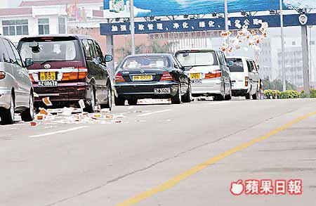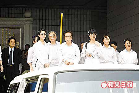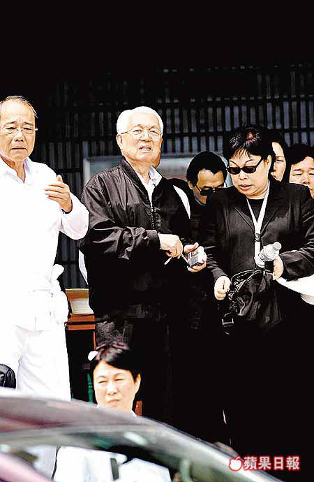 而蔡伯勵昨午抵達殯儀館後,沒多久手持巨香的林建名與捧着林伯遺照的林建康即離場上山,靈車在一時三十分開出,直駛往相隔約三分鐘車程的西山公園林家祖墓,沿路親友不斷撒冥鏹。不過林家一行人進入祖墓範圍後,即有約三十名身材健碩的潮州大漢一字排開,阻止記者上山及遮擋鏡頭。