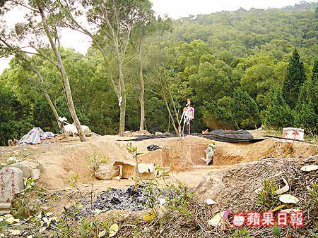 現場所見,林家親友上山後均戴上草帽遮擋太陽,經三個多小時入土儀式後,眾人約五時離去。雖然林伯的土葬儀式已完成,但仍有十多名當地保安人員二十四小時駐守林家墓地,鑑於林伯的墓穴仍須動工,保安人員會待數天後工程完結才撤走。