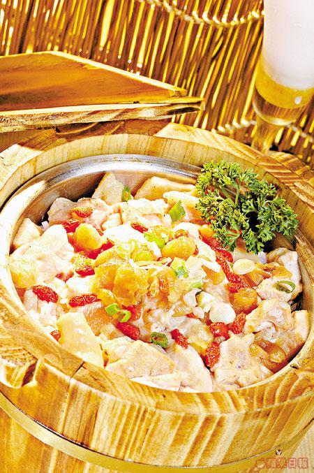木桶蒸飯有鮮竹梅菜肉餅及杞子圓肉雞粒2款,由於是原盅蒸熟,所以每天只可供應60個,每日下午二時多即售罄,當中以後者最受追捧,蒸飯沒盅飯般油淋淋,用明目的杞子圓肉做配料,感覺養生健怡,是OL至愛。至於海南雞飯的油飯,則由香米混糯米煮成,吃落較黏口軟腍,油份不重像用已調味的水煮成,配金菇肥牛卷、吉列豬扒等,就成了餐廳的創新菜。早餐通粉雖依舊是香腸粒做配料,但配上切粒時蔬,並非雪藏蔬菜粒,感覺上健怡清新得多。