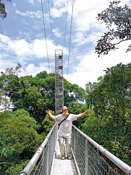 我畏高呀!鐵橋在空氣中不知真搖還是假搖,總之風吹過樹梢的動作已嚇得我失魂又落魄了。隊友在鼓勵我,睜開眼睛吧!嘩!好壯觀呀!一大片青青翠翠的雨林彷彿在我腳下,實在不可思議。這刻我才放開懷抱,盡情傾聽亞洲之肺的呼吸聲,好--舒--服--呀!