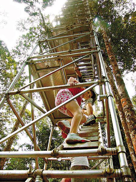 土地有八成被熱帶雨林包圍的汶萊,有亞洲之肺的美譽。十個有九個遊人來這個富裕之國,都心甘情願入熱帶雨林冒險。說冒險一點也沒有誇張,激流以後,要上千級樓梯,再攀60米鐵梯,汗流浹背,膽顫心驚,目的,就是見證高高在上、雨林在腳下的滿足感。