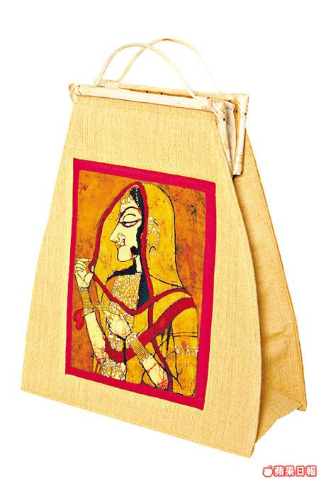 手袋闊39cm、高44cm,以麻布製成並染成黃色,袋上綴以具泰國特色的蠟染圖案。將布蠟染後再整片縫製在麻布手袋上,令平實的手袋增添了藝術氣質。
