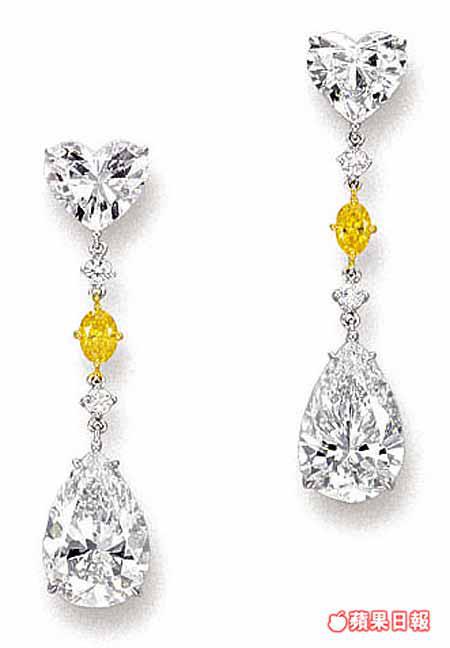 而全場最貴的拍賣品,則是一條18K白金黃白鑽頸鏈,頸鏈由九顆重逾四十二卡、fancyvividyellow的方形黃鑽鑲成,再飾以白鑽,瑰麗無比,估價達二千五百萬元。至於向來深受亞洲人歡迎的翡翠,一條由三十九顆翠綠無瑕、渾圓剔透俗稱「老坑色」翡翠珠子組成的頸鏈,再配上重二點零三卡圓鑽鏈扣,雍容華貴,估價九百萬至一千五百萬元。