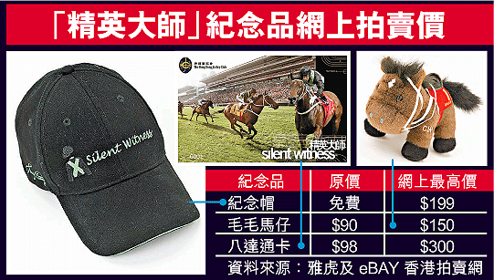 在網上拍賣的精英大師紀念品中,以馬會早前推出限量發售的八達通卡最多,數量多達一百張。賣家開價由一百五十元至三百元不等。至於馬會限量發售的精英大師特別版毛毛馬仔,經買家叫價八次,每個原價九十元的公仔最新叫價已升至一百五十元。有賣家以「斷市」等字眼,希望吸引更多買家競投。