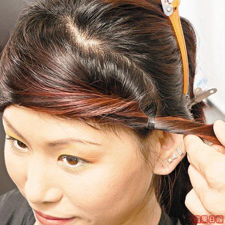 如果你化上Colourful的糖果Look或Tanlook,襯個活潑的髮型就最適合。DIYSet頭離不開左繞右繞,將頭髮束起。今次的髮型,重點在於將額前頭髮束在旁邊,髮尾再打結。部份頭髮會束在後腦,把兩旁頭髮弄成絲狀,增加頭髮的Volume。