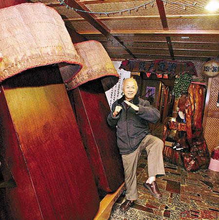 記得第一次到訪奮起湖,導遊告訴我必定要吃那個有雞髀、滷水蛋、酸菜等材料的「奮起湖便當」,就如遊德國必食豬手一樣。還以為事件開始重複之際,便當老闆林金坤卻突然故作神秘地帶我們看看他的最新力作──一對高1.98米、闊0.69米、厚0.38米的巨型木屐,這雙木屐,每隻重達200公斤,認真誇張!