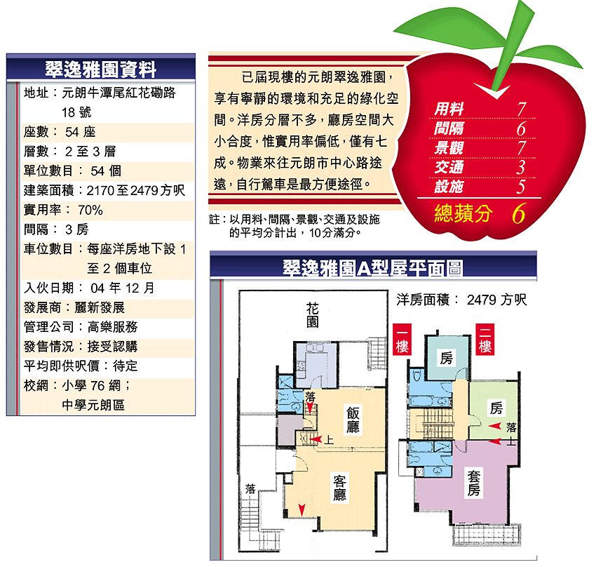 元朗洋房翠逸雅園位於牛潭尾,地點雖偏遠,但向北可望皇崗口岸,穿梭中港兩地就很方便。屋苑地勢較高,洋房並排而建,因前方多為低密度式洋房或村屋,附近群山環繞,故可享翠綠山巒景色,視野無阻隔。