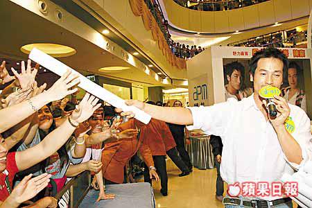 陳豪、林峯及吳卓羲昨日在觀塘出席新唱片《男人魅》簽名會,大會一共派發約六百個籌,連同圍觀巿民合共約千多人。