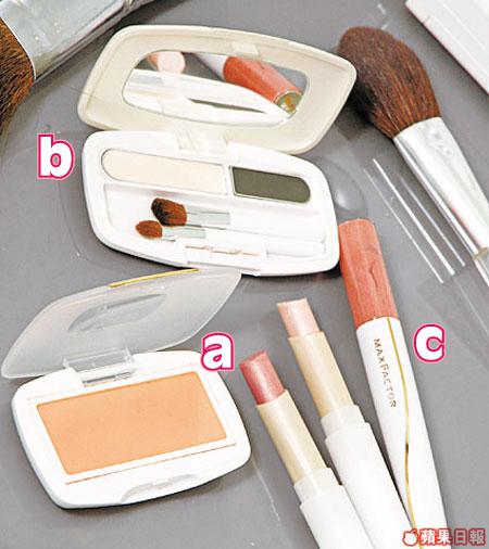 要掩飾缺陷便要懂用調色液,CreamYellow可遮黑眼圈、斑印;BabyPink塗於眼部兩側及雙頰;FrostyPearl則用於T字位及眼窩,突出輪廓。