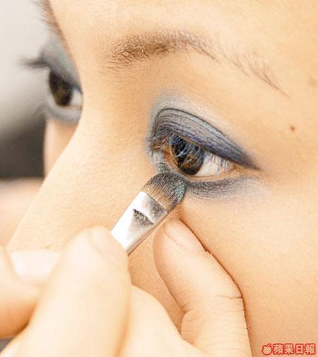 粉藍色亦是今個夏季的重點色調,只要用海藍色眼影在眼窩及眼下位置掃上後,再用深藍色眼影塗於上眼線和在眼尾微微往上掃;下眼線則由眼尾向前塗至中央,便成迷人晚妝。