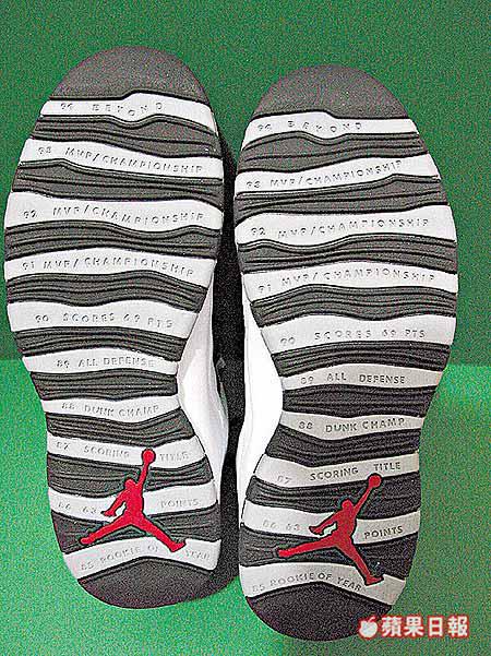 按照AJ系列的傳統,十和二十代都是一對紀念意義大於一切的籃球鞋,正如AJ20上面有刻滿佐敦光輝史的雷射印記,有「斑馬」之稱的AJ10鞋底亦刻滿了佐敦由出道到九四年首次退休時的偉大事迹;單就欣賞和收藏角度,AJ10大概是非買不可!