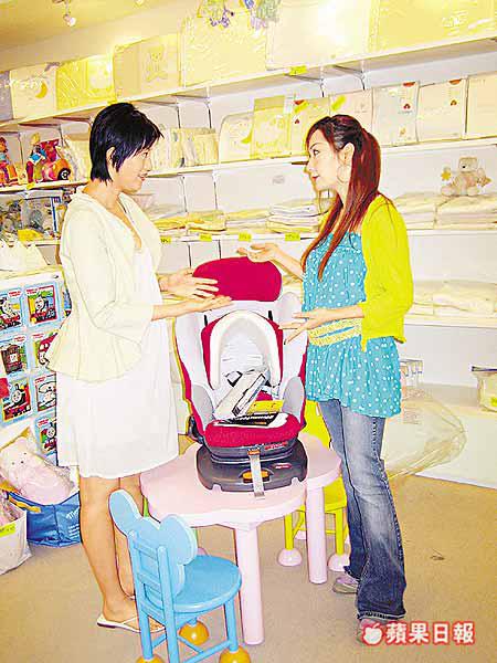 蔡慧敏打算送嬰兒汽車座給奀妹的BB,所以二人即在新款嬰兒汽車座前細心研究。