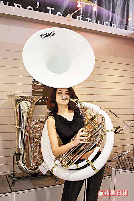 淨重9公斤的Yamaha低音號,採用象牙白色,令表演者更易引人注意,售價約1.8萬港元。