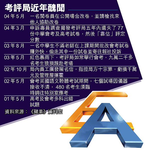 【本報訊】中學會考試題險告外洩,香港考試及評核局兩名職員涉嫌企圖偷竊會考試題,局方發現後報警處理。考評局是在接獲傳媒查詢後始承認事件,並以「法律程序」為理由,拒絕公開案件詳情,只強調事件中沒有失去任何試卷。教育界人士質疑考評局保安措施是否有效,有中學生擔心已有試題外洩,對考評局失去信心。 記者:蔡元貴