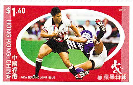 這些郵票是香港郵政局去年為紀念在港舉行的國際七人欖球賽,特別聯同新西蘭郵政局共同發行,身為港將的福平,被選中成為郵票主角。