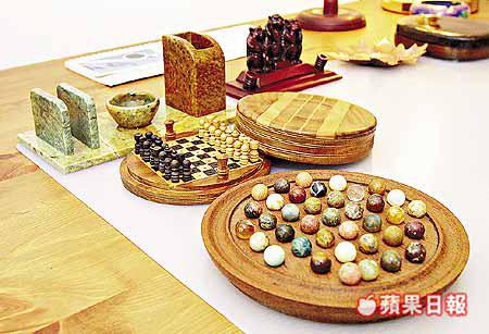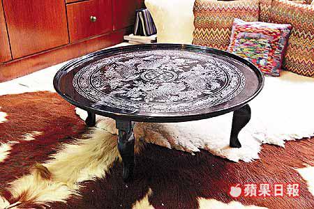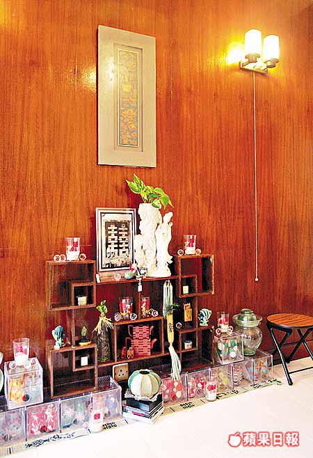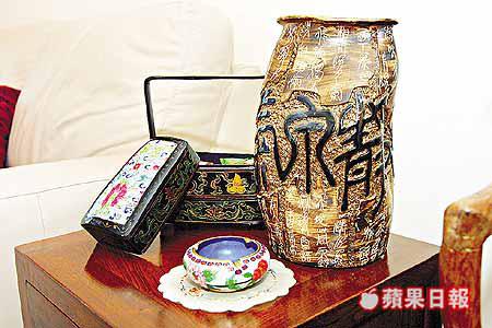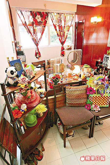 環顧斗室,以「雙喜」圖案擺設最多,有關的玻璃樽、小盒子、年曆畫、杯子、金屬茶几都有齊,滿屋喜慶洋洋,氣氛煞是開心。另外,還有銀器及刺繡擺設,全屬手工藝品,饒富韻味,要細心欣賞。