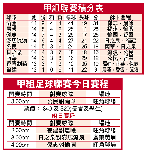 【本報訊】踏入○五年九戰不勝的南華,希望在今午三時在旺角球場上演的甲組聯賽護級戰,能夠成功克服護級的心理壓力,發揮水準求破公民,如成功便有很大機會保住來屆甲組席位!