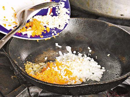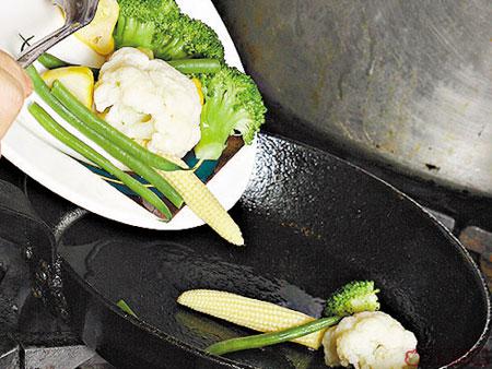 4.將雜菜炒至半熟,加鹽與胡椒粉調味。