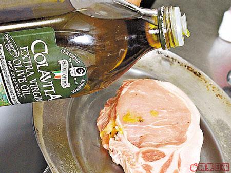 2.豬扒先以橄欖油醃過夜,令豬肉更軟滑。