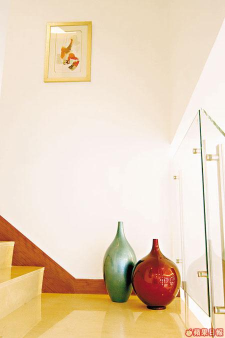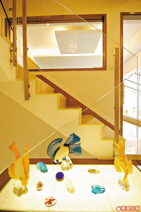 呢度有三層樓梯,從地下走到天台,時間頗長,細心的設計師就在二樓燈箱位,設計了個小平台,放置彩色的水晶擺設,給人Take個Break的感覺,行樓梯都無咁悶。」