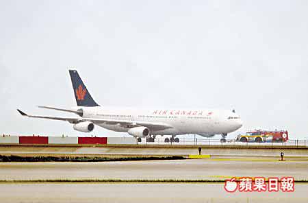 【本報訊】加拿大航空公司一架客機,昨午從香港機場起飛往溫哥華途中發生九霄驚魂,機組人員工作間的工作燈疑因短路突然冒煙,幸未有蔓延,機上乘客獲悉機艙冒煙,部份乘客顯得驚慌,但沒有引起混亂,客機於四十分鐘後緊急折返本港機場,機上乘客與機員並無受傷,大批消防車一度在機場跑道戒備,事後機上乘客由航空公司安排入住機場酒店,今日轉乘另一班客機繼續行程。事件中有一名機員感到不適,但毋須送院。
