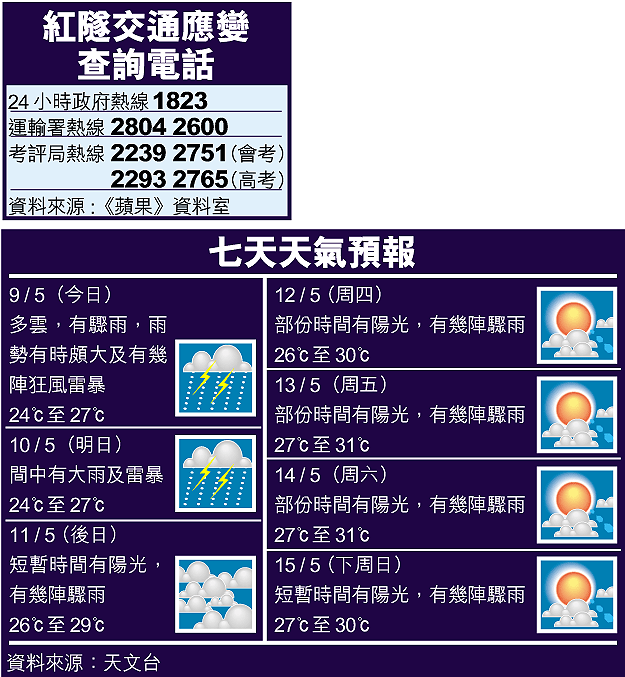 【本報訊】東區海底隧道加價踏入第九天,隨着內地黃金周完結,加上天文台預計今日有大雨及狂風雷暴,紅磡海底隧道將遇上嚴峻挑戰。運輸署預計今日過海交通將十分繁忙,早上緊急事故交通協調中心會與警方、專營巴士公司及各隧道管理公司保持密切聯繫,並按情況盡快作出應變。