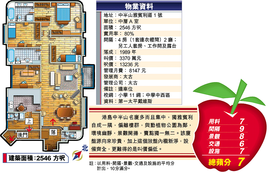 該廈落成後一直出租,至01年始分拆出售,至今尚餘1伙,二手放盤也不多,長期只在10個以內,以下介紹的中層放盤,為一、二手盤源中,叫價最平之選。