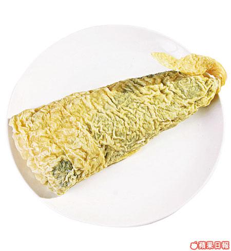 餐館自家出品,紫菜有海鮮味,故先用紫菜扮魚皮,再包起素肉鬆、豆腐、冬菇、金菇、鮮竹,再加腐竹加強爽口感覺。