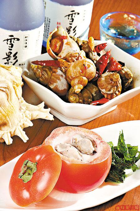 前者番茄雕心盛載芝士白汁番茄粒,內裏還有兩粒小鮑魚,番茄粒的酸味中和芝士白汁的肥膩;後者翡翠螺夠鮮嫩彈牙,辣汁激辣,小心變孖膶腸嘴。