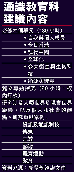 【本報訊】新高中學制加入的通識教育科在首輪諮詢中極受爭議,教育統籌局在新推出的諮詢文件中作出些微讓步,將必修單元由九個減至六個,而選修單元則全面取消,但否定教育界提出該科設兩個或三個評級的建議,並維持必修必考,整體上課時間由百分之十二點五減至一成。教育界人士歡迎當局對通識教育科的「減磅」建議,但堅持該科必修必考及設立五個等級,是扭曲通識教育的本意。