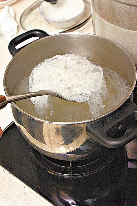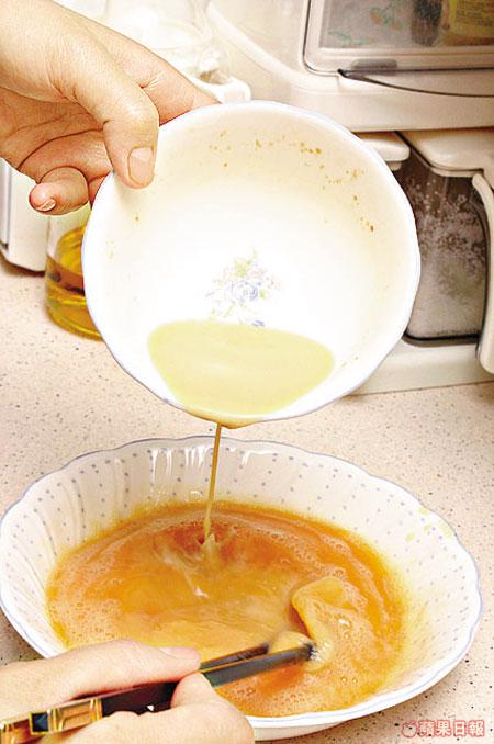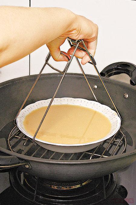 滾水開溶好立克後要攤凍才加入蛋液內,隔去泡泡,蒸蛋才會滑嘟嘟!蒸熟後小心揭蓋免倒汗水流入蛋內。