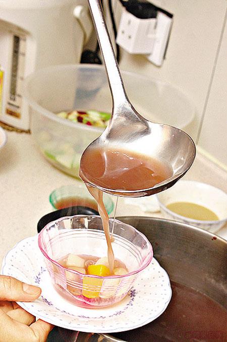 大菜邊煮邊攪,可防黐底;滾水開溶阿華田,加入大菜內才不會起粒粒。