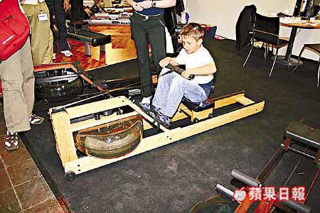 以合桃木製成支架的WaterRower室內划艇器,設有28千克水箱作拉動阻力,令運動感覺猶如真正水上行舟,如想使用更大阻力的35千克及38千克水箱則只能選擇金屬支架,售價由1.5萬至2.1萬港元。