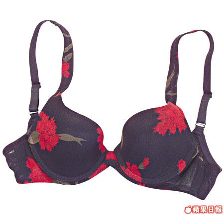 黑喱士面紅花圖案Bra,摸上手夠滑。
