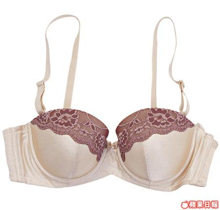 全個喱士t杯Bra,把脂肪由下及左右推向中間,身形瘦削最啱,厚墊可拆除。