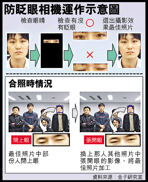拍照時,甫士擺得有型有款,但最掃興是忍不住眨眼,鏡頭卻偏偏把眨眼的剎那拍下來。不過,日本研究員成功發展出新的拍照技術,保證人人拍下來的照片,全部睜開眼睛,不會出現「冇眼睇」或「半隻眼開半隻眼閉」的醜樣。