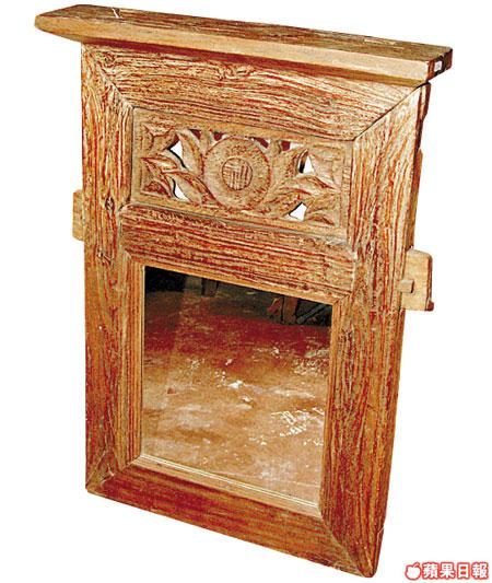 舊木是從印尼一間大宅拆下來,再配上新的鏡片。木的雕花很細緻,喜歡古舊木家具的會如獲至寶,放在門口的櫃頂,出門口前照一照,整理妝容才出發。