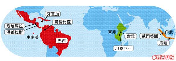 世界上大部份咖啡都是種植在南北回歸線之間,地區包括南美洲、中美洲以及太平洋島嶼上的種植地帶,而亞洲亦有出產,由於不同地區的土壤、氣候和不同的耕種方式,所生產出的咖啡也存在很大分別,所以每種咖啡都有其獨一無二的味道。
