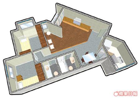 客廳和飯廳以地下的物料做分界,客廳鋪上木地台,飯廳就以英泥平鋪地面,壁壘分明。屋內每部份都有特別地方,一定要逐格睇。