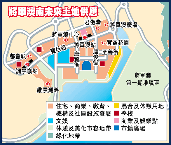 據報告估計,稍後便會修訂將軍澳分區計劃大綱圖,反映此研究結果內容,當明年中後期完成修定程序後,政府便可進行批地及賣地。