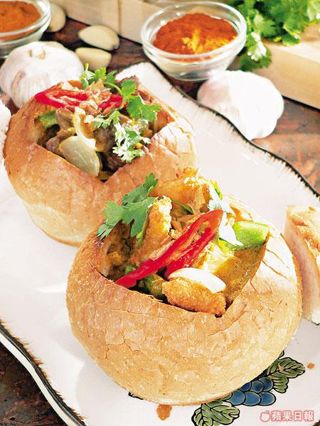內餡可選牛肉、豬肉、羊肉或魚柳,咖喱汁亦可因應客人要求而加強辣度,用麵包索咖喱汁,融合港人少吃飯的潮流。