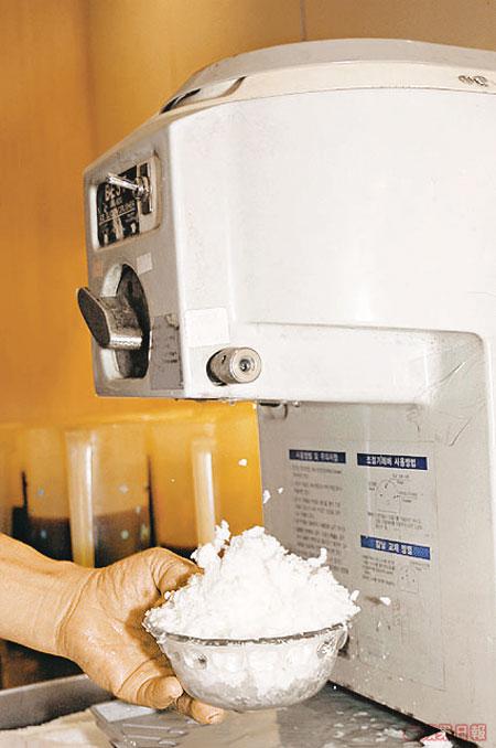辣到出火,吃「棉棉冰」解渴!馬師傅專誠到韓國訂購刀片厚度薄一半的刨冰機,刨出來的冰屑薄過紙,有芒果、草莓、奇異果及牛奶紅豆4種味道選擇(細$16,大$28)。